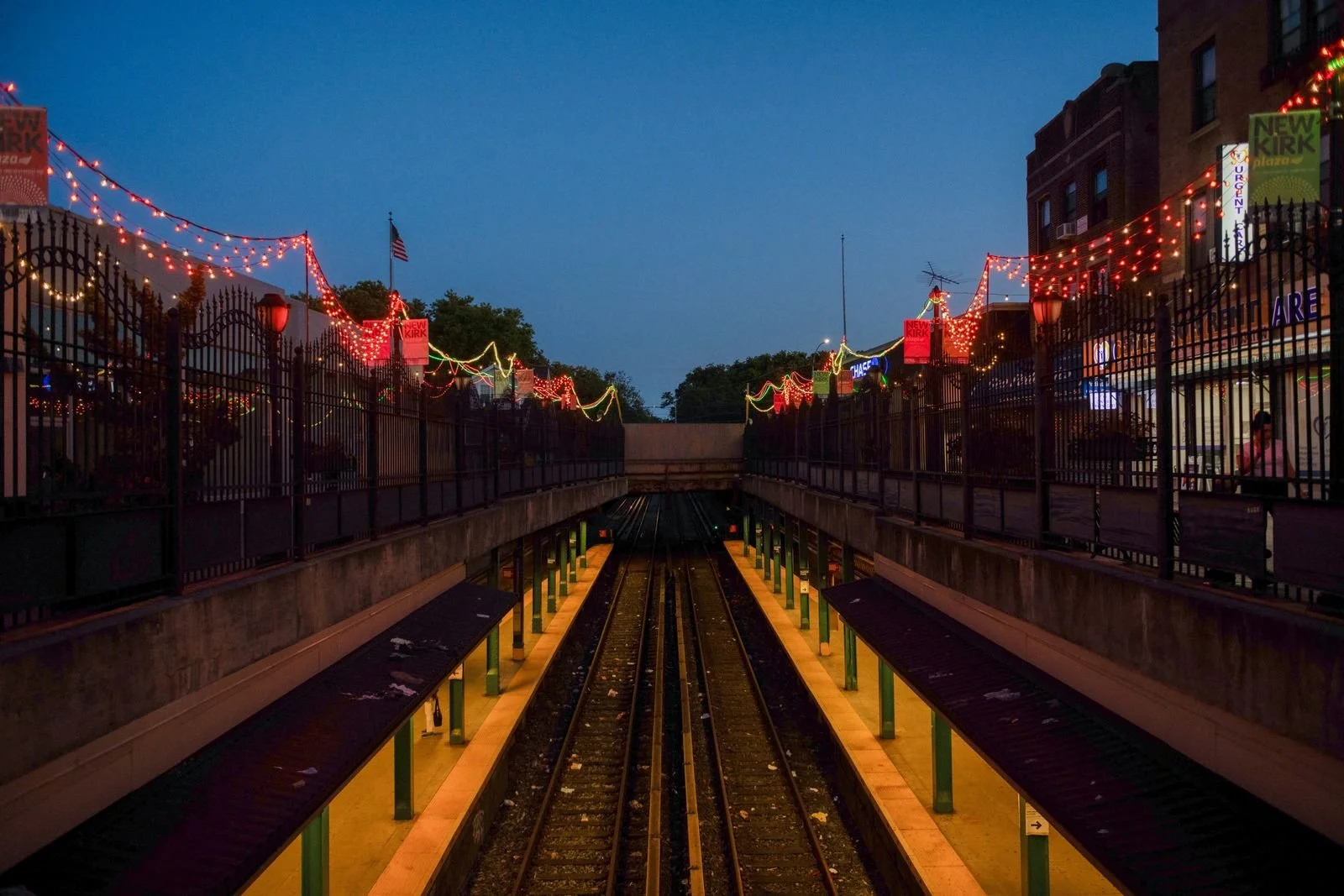 Urban Braids was commissioned by Flatbush Development Corporation. The location, a mall which opened in 1913, is is predominantly composed of mom-and-pop stores.The plaza consists of two parallel walkways, “open cut” and raised above a New York City subway station. The Q and B trains serve 2-million straphangers per year. The project was funded by New York City’s Small Business Services grant as part of their Commercial District Lighting initiative for 15 NYC neighborhoods. The intent is to boost local businesses and foster community engagement by creating a vibrant, well-lit environment for shopping, strolling, and commuting.